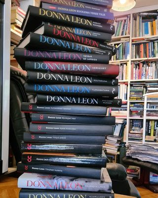 Kirjoja olen lukenut jokaisella hoitojaksolla ja samaa jatkan eli tulen edelleenkin mielikuvamatkailemaan Venetsiassa Paolan palazzojen ja italialaisten makujen sekä Brunettin kirjallisuusviittauksien parissa. Jotta luettava ei pääse loppumaan, pakkaan varmuuden vuoksi mukaan myös apteekkari Melchioreita, joiden kanssa pääsen keskiaikaiseen Viroon.